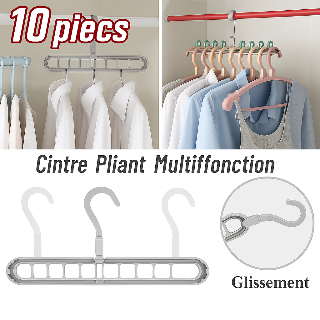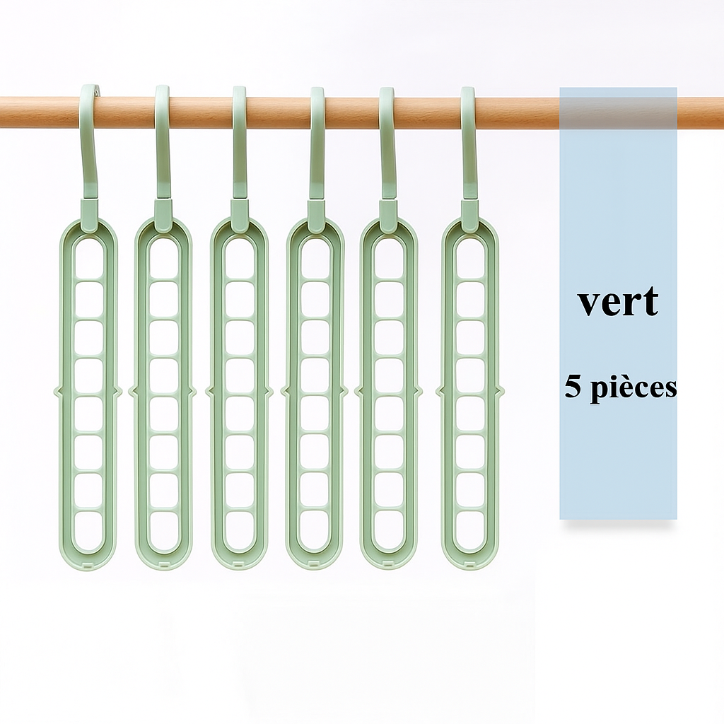 Chaque tringle 9 trous vous permet de suspendre jusqu’à 9 cintres à la verticale ou à l’horizontale, libérant jusqu’à 80 % d’espace dans votre armoire ou penderie. Idéal pour optimiser les petits dressings, studios ou placards partagés.