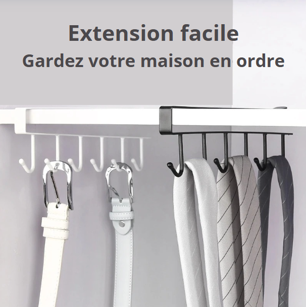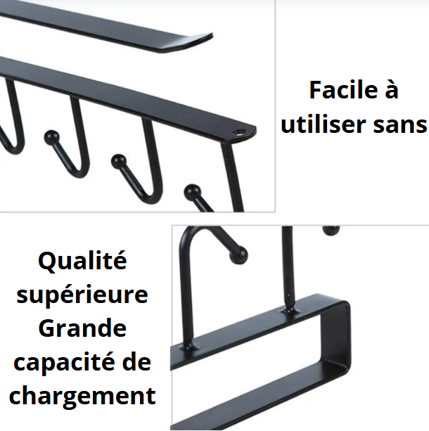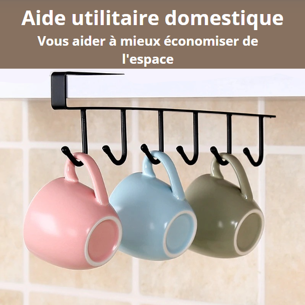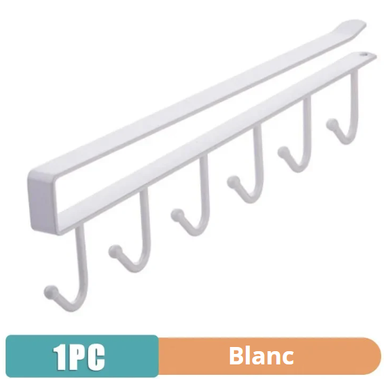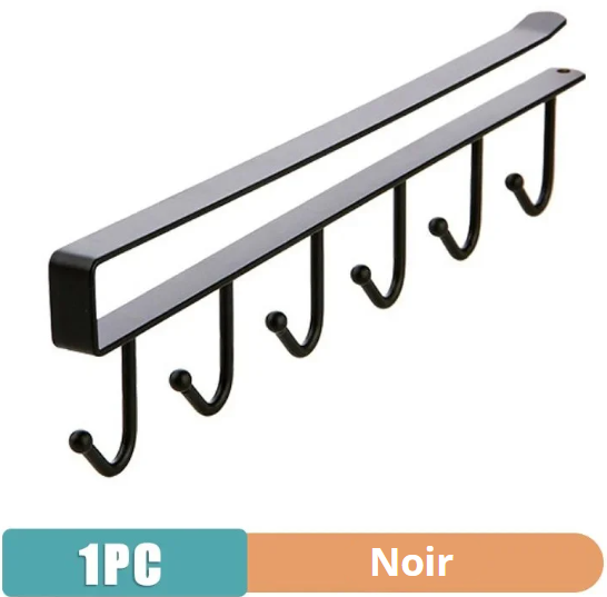 Équipé de 6 crochets robustes, ce support vous permet de suspendre vos mugs, tasses, ustensiles, clés ou même torchons. Il n’est pas seulement pratique, il est aussi pensé pour s’adapter à votre style de cuisine : en noir mat élégant ou en blanc minimaliste, il trouve sa place aussi bien dans une cuisine moderne et épurée que dans un intérieur plus rustique ou chaleureux. Sa taille compacte (26 cm de largeur, 7 cm de profondeur, 6,8 cm de hauteur) le rend compatible avec la plupart des étagères standards.