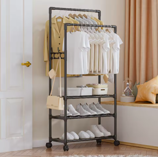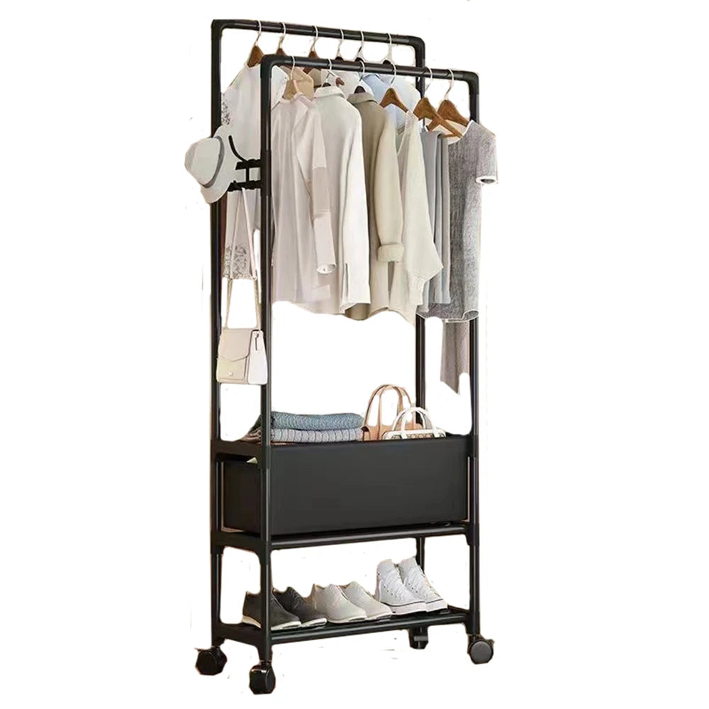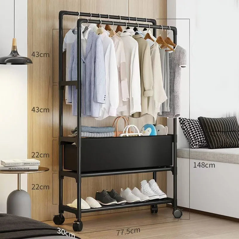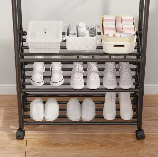 Avec ses roues intégrées, ce rack devient mobile et maniable : idéal pour optimiser l’espace ou réorganiser une pièce sans effort.