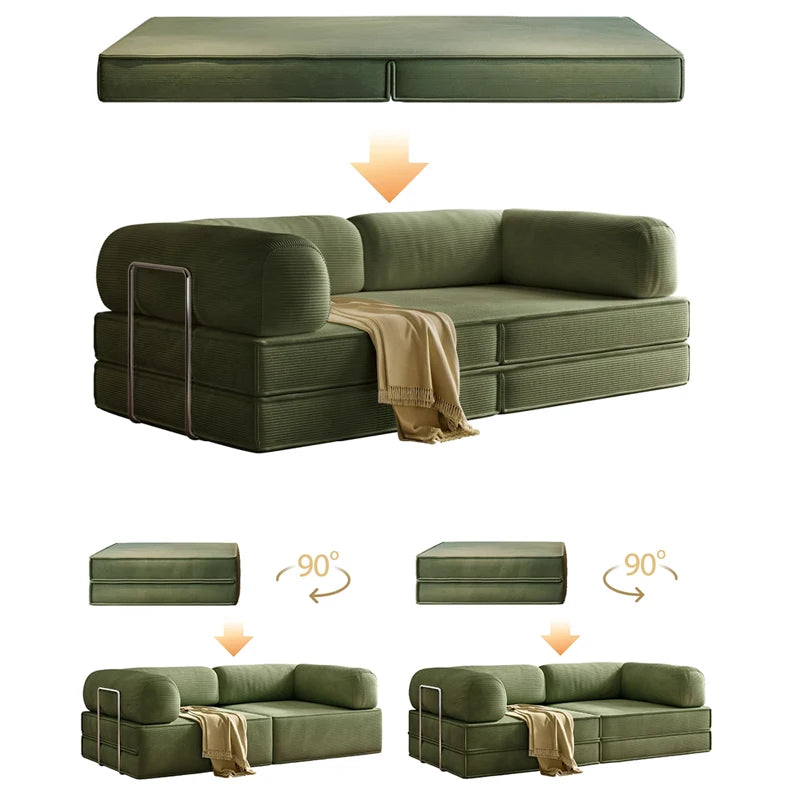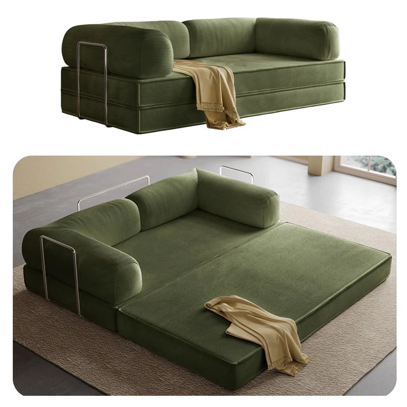 Revêtu d’un tissu velours doux et équipé d’un rembourrage en mousse haute densité, il offre un confort optimal pour vos moments de détente. Le canapé se déplie rapidement en un lit d’appoint pour 2 personnes, idéal pour accueillir vos invités sans sacrifier l’esthétique.