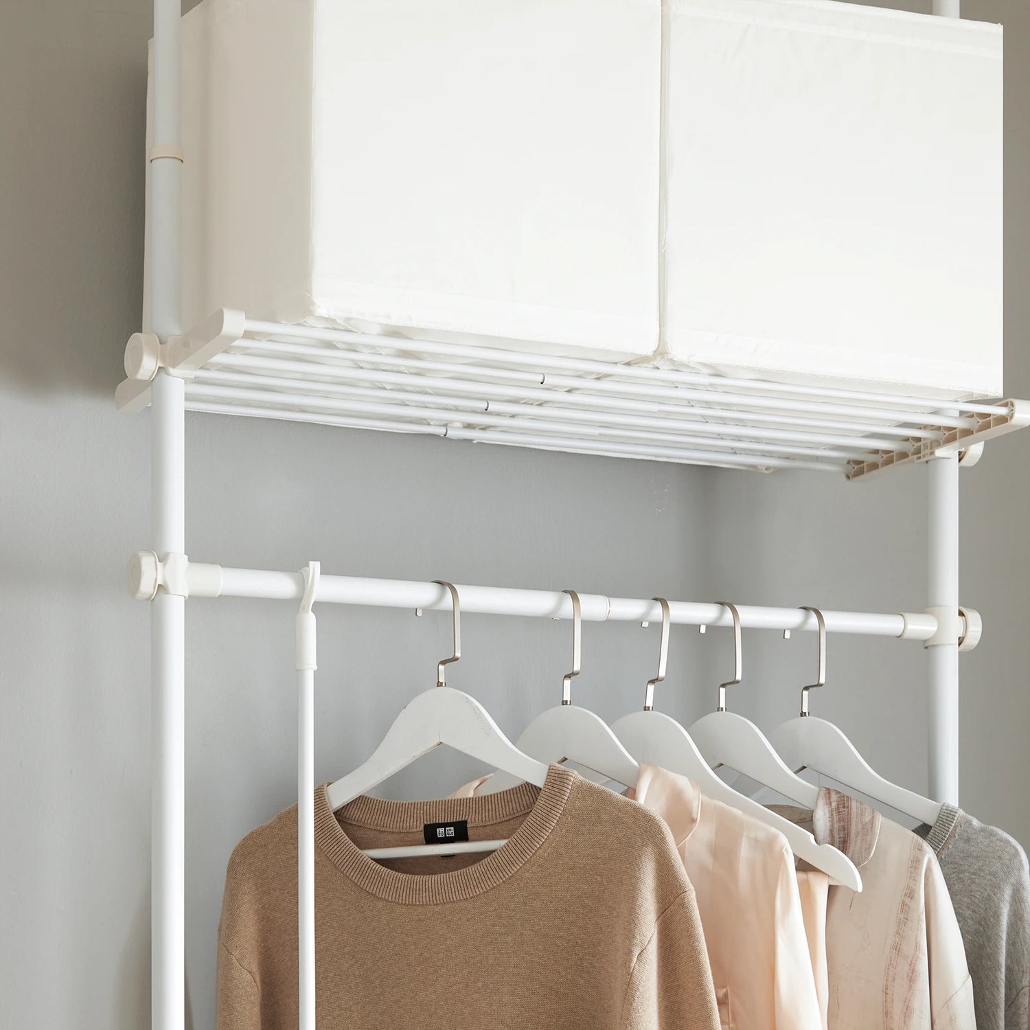 Parfait pour les petits espaces ou appartements en location, ce dressing modulable se fixe entre le sol et le plafond sans abîmer les murs.