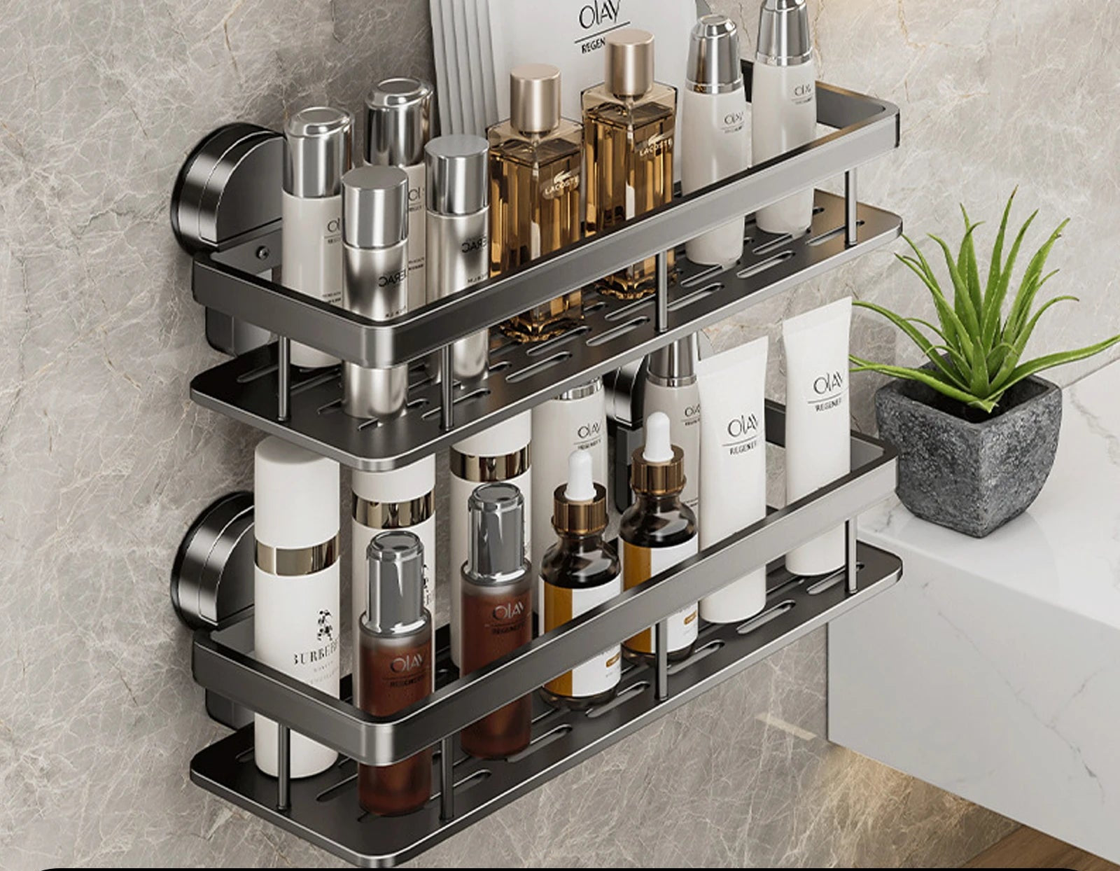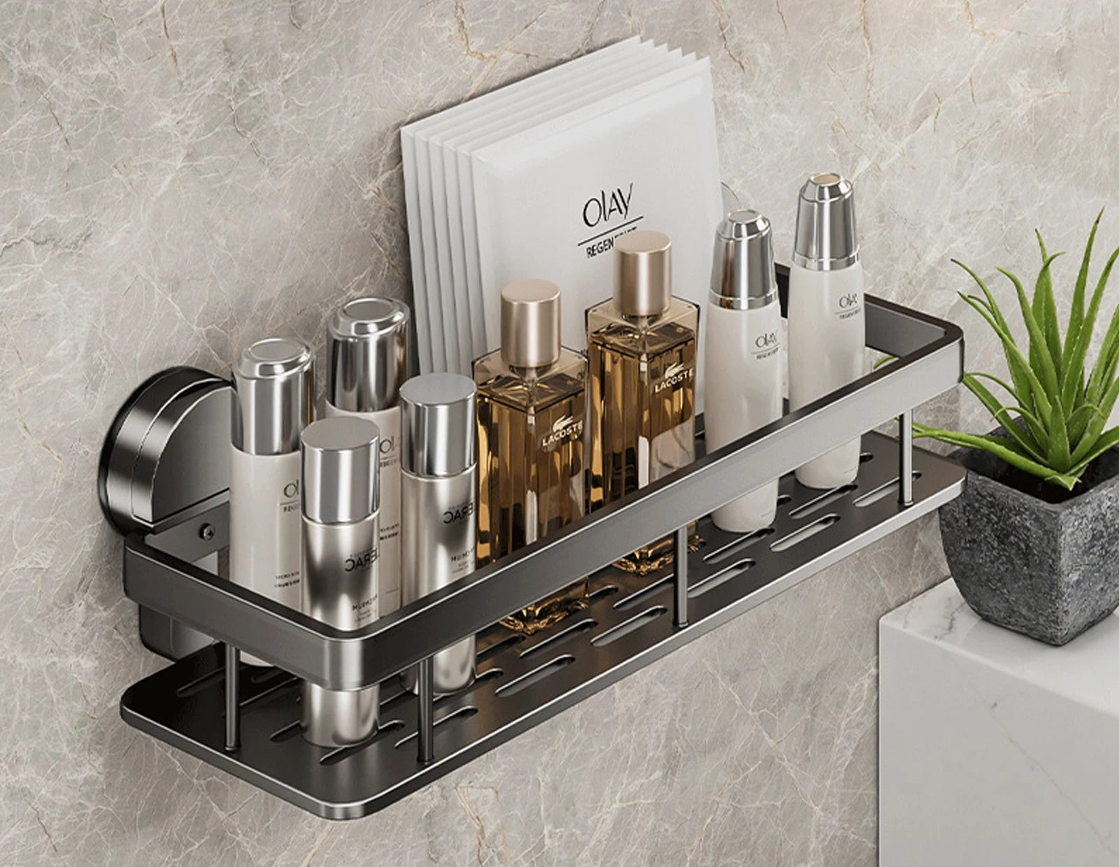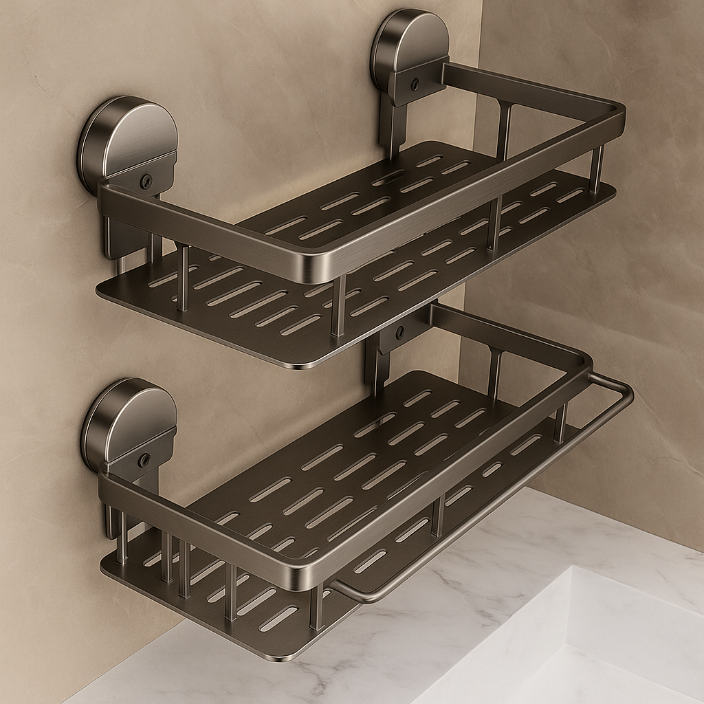 Grâce à ses ventouses à vide d’air ultra-adhérentes, fixez l’étagère en quelques secondes sur carrelage, verre ou surface lisse — sans abîmer vos murs, même en zone humide.