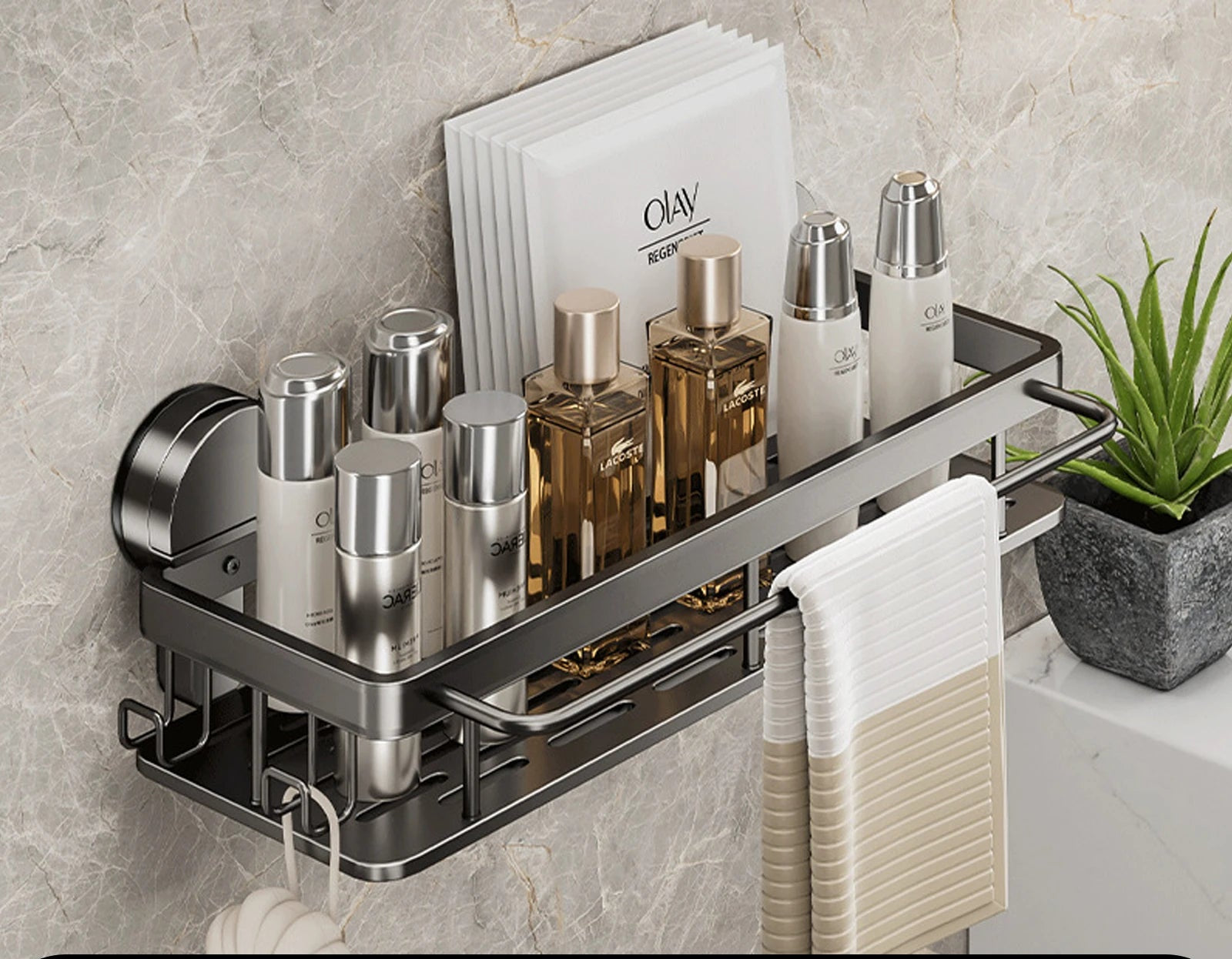 Compacte mais spacieuse, elle accueille shampoings, savons, épices ou soins, avec un fond perforé pour éviter l’eau stagnante. Une vraie solution gain de place pour les intérieurs bien pensés.